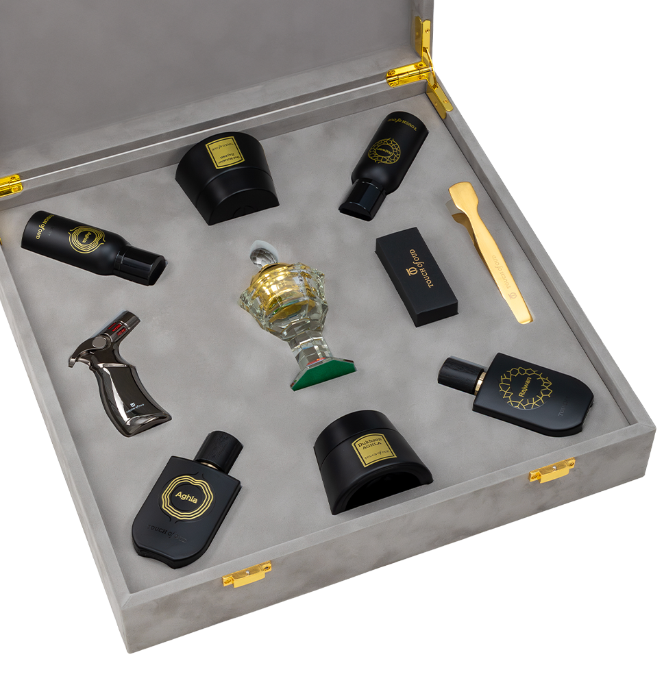 Introducing our exquisite Precious 10 Pieces Gift Set, a luxurious collection of fragrances and aromatic delights. This carefully curated set includes the captivating Aghla Perfume and Rajwan Perfume, both leaving an enchanting trail wherever you go. Enhance your hair with the alluring Aghla Hair Mist and Rajwan Hair Mist, adding a touch of elegance to your every movement.