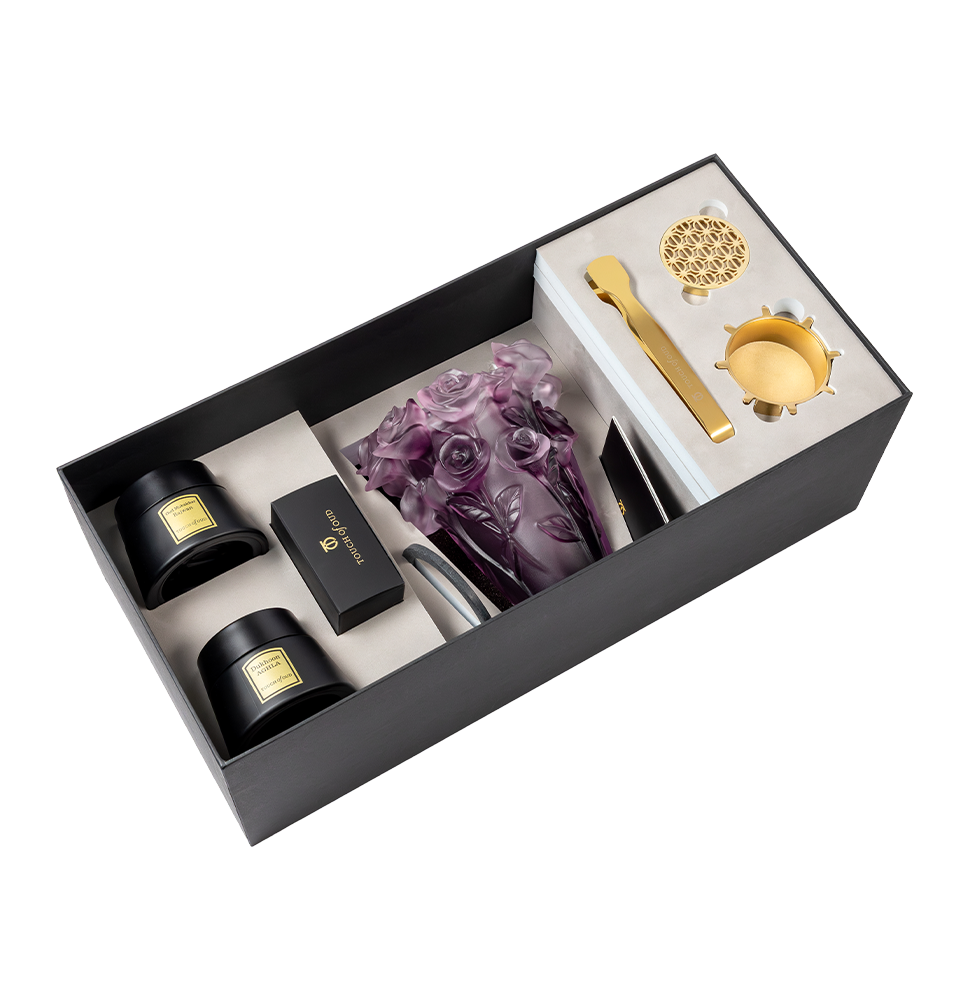 Send your gratefulness to your loved ones with an outstanding gift set from Touch of Oud.Five extraordinary pieces are laid in an exquisite box to express your love and appreciation for the ones whom you care about. Dukhoon and Bukhoor indulge the senses in healing the soul.You can place the Dukhoon or Bukhoor in the Purple flower burner and enjoy the scents which will make you fly to another dimension.