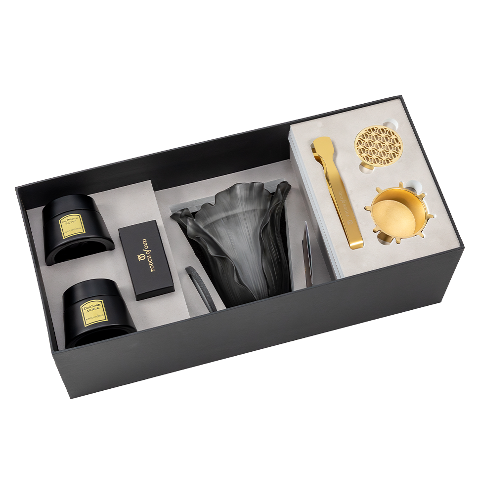 Send your gratefulness to your loved ones with an outstanding gift set from Touch of Oud.Five extraordinary pieces are laid in an exquisite box to express your love and appreciation for the ones whom you care about. Dukhoon and Bukhoor indulge the senses in healing the soul.You can place the Dukhoon or Bukhoor in the Grey cabbage burner and enjoy the scents which will make you fly to another dimension.