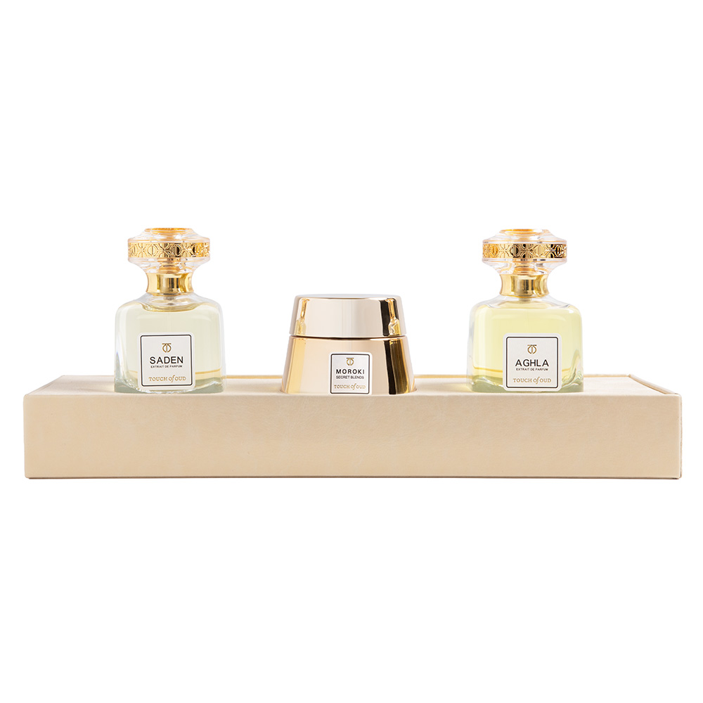 Product Description<p>The Touch of Oud 3 PCs PCs Elegant Fragrance Set brings together fine fragrance and traditional bukhoor in one elegant collection. This thoughtfully assembled set includes the perfumes Saden and Aghla along with Moroki Bukhoor creating a complete sensory experience.</p><p><span style="font-size: 0.875rem;">Encased in a refined briefcase style box this gift set is ideal for meaningful gifting festive occasions and luxurious home fragrance moments. A perfect blend of modern scent and traditional aroma crafted for those who value premium quality.</span></p>FeaturesReviews0 Back The Touch of Oud 3 PCs PCs Elegant Fragrance Set brings together fine fragrance and traditional bukhoor in one elegant collection. This thoughtfully assembled set includes the perfumes Saden and Aghla along with Moroki Bukhoor creating a complete sensory experience.Encased in a refined briefcase style box this gift set is ideal for meaningful gifting festive occasions and luxurious home fragrance moments. A perfect blend of modern scent and traditional aroma crafted for those who value premium quality. Fragrance Type Extrait De Parfum Write a review There are no reviews yet Free Shipping Cash On Delivery Money Back Guarantee 24/7 Support Related products Exclusive Bukhoor Gift Set 750 AED Shop Now Exclusive Perfume Bukhoor Gift Set 750 AED Shop Now 5pcs Gift Set -Clear Burner Bukhoor Dukhoon 1011 AED Shop Now 5pc Gift Set White Flower Burner 1200 AED Shop Now 5pc Gift Set White Cabbage Burner 1200 AED Shop Now 5pcs Gift Set -Lake Blue Burner Bukhoor Dukhoon 1011 AED Shop Now 5pcs Gift Set -Green Burner Bukhoor Dukhoon 1011 AED Shop Now 7Pcs Gift Set Rajwan 880 AED Shop Now 5pcs Gift Set Grey/Purple Flower Burner 1200 AED Shop Now 7pcs Gift Set Aghla 880 AED Shop Now 5pcs Gift Set -Yellow Burner Bukhoor Dukhoon 1011 AED Shop Now 5pcs Gift Set -Red Burner Bukhoor Dukhoon 1011 AED Shop Now 9pcs Gift Set - Perfume & Dukhoon 750 AED Shop Now 9pcs Gift Set - Bukhoor & Dukhoon 750 AED Shop Now Exclusive - 3pcs Gift Set 1050 AED Shop Now 5pcs Gift Set Grey Flower Burner 1200 AED Shop Now Special 4pcs Gift Set 480 AED Shop Now 10pcs Gray Velvet Gift Set 990 AED Shop Now 10pcs Precious Gift Set 1490 AED Shop Now Luxury Perfumes Gift Set 5200 AED Shop Now Premium Burner Gift Set 4600 AED Shop Now Fusion Delight Set 2300 AED Shop Now Luxury Oasis Set 2200 AED Shop Now Fragrant Home Set 560 AED Shop Now 5pcs Gift Set Grey Purple Cabbage Burner 1200 AED Shop Now 5pcs Gift Set Dark Green Flower Burner 1200 AED Shop Now Oud Royale Gold 8Pcs Gift Set 1850 AED Shop Now Prestige Gift Set 450 AED Shop Now Oud Royale Silver 8Pcs Gift Set 1850 AED Shop Now 3Pcs Signature Fragrance Gift Box 1900 AED Shop Now 3Pcs Elegant Fragrance Set 1820 AED Shop Now